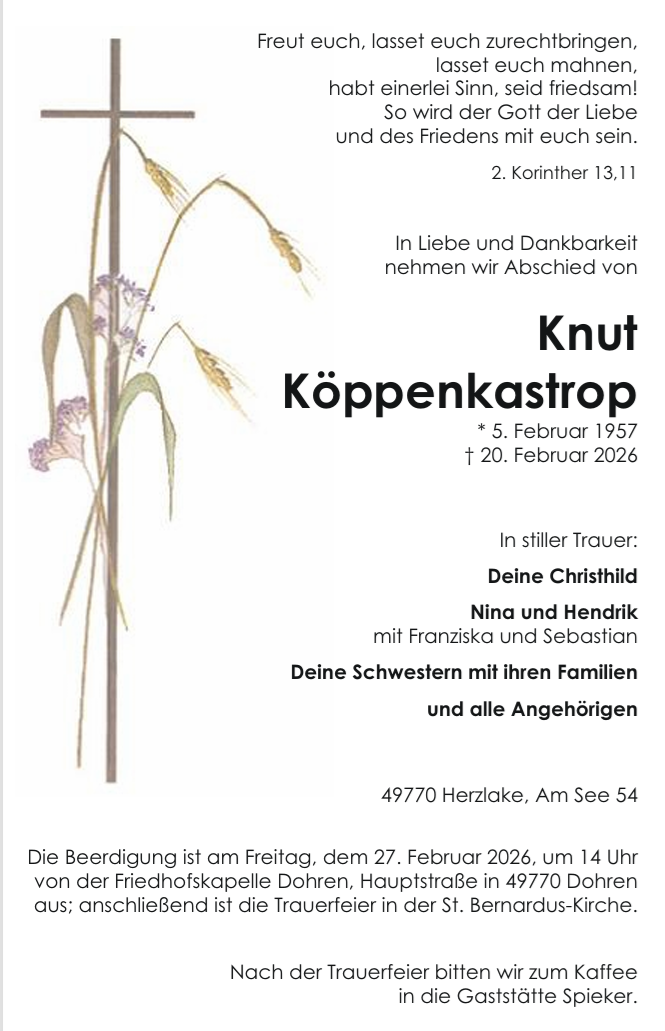Wir erhielten die traurige Nachricht, dass Knut Köppenkastrop am 20.02.2026 verstorben ist.